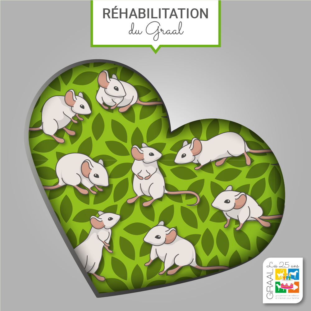 Le GRAAL est très heureux de pouvoir annoncer la sortie de laboratoire de 67 petites souris blanches entre fin mars et début avril.