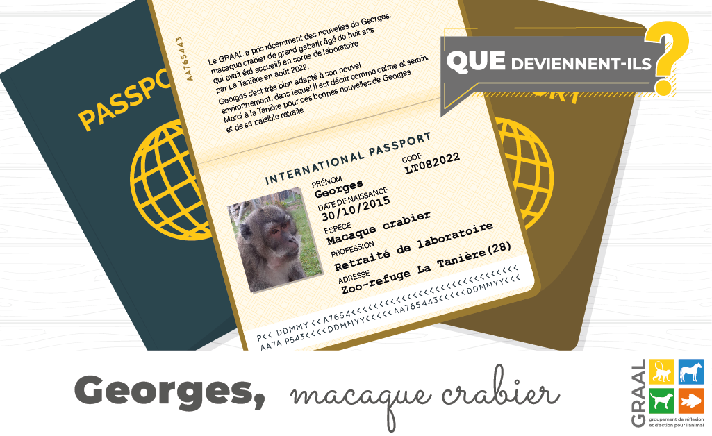 Le GRAAL a pris récemment des nouvelles de Georges, macaque crabier de grand gabarit âgé de 8 ans qui avait été accueilli en sortie de laboratoire par La Tanière en août 2022.