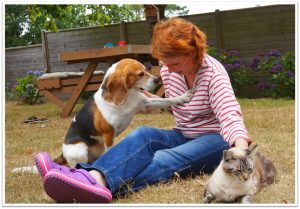 Barbara et Fabrice se souviennent de son arrivée avec émotion : « Nous avons adopté GABIN le 22 décembre 2015, son arrivée a été un magnifique cadeau de Noël pour nous tous. Il a rejoint LILI, beagle de 11 ans réhabilitée d’un laboratoire il y a huit ans, et nos chats NOUGATINE et NELSON. » Malgré son âge, GABIN s’est très vite adapté à son nouveau foyer. S’il se montre toujours un peu craintif face à des visages inconnus, GABIN est un hyper-sensible qui a besoin de câlins et de tendresse ! Il forme aujourd’hui, avec LILI, un couple très attachant. LILI a, elle aussi, beaucoup progressé au contact de GABIN, et a même retrouvé la ligne ! Parce qu’il faut le savoir, ces adorables beagles sont de sacrés gourmands…