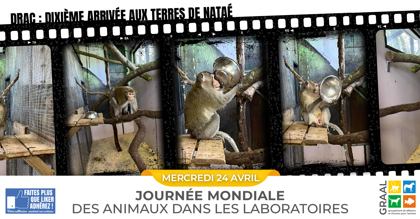 En cette Journée Mondiale des Animaux dans les Laboratoires, nous sommes heureux de vous partager une magnifique nouvelle ! Au début du mois d’avril, Drac, un macaque né en 2003, a quitté le laboratoire où il avait résidé pendant 14 ans pour rejoindre les Terres de Nataé.