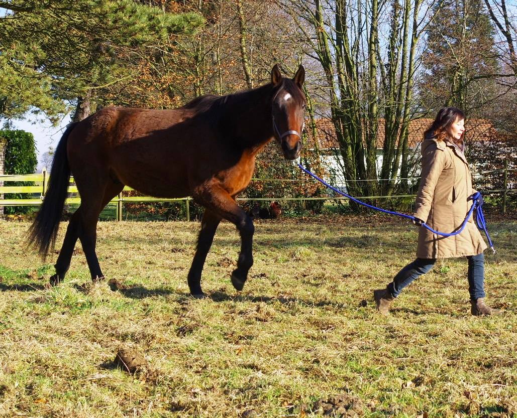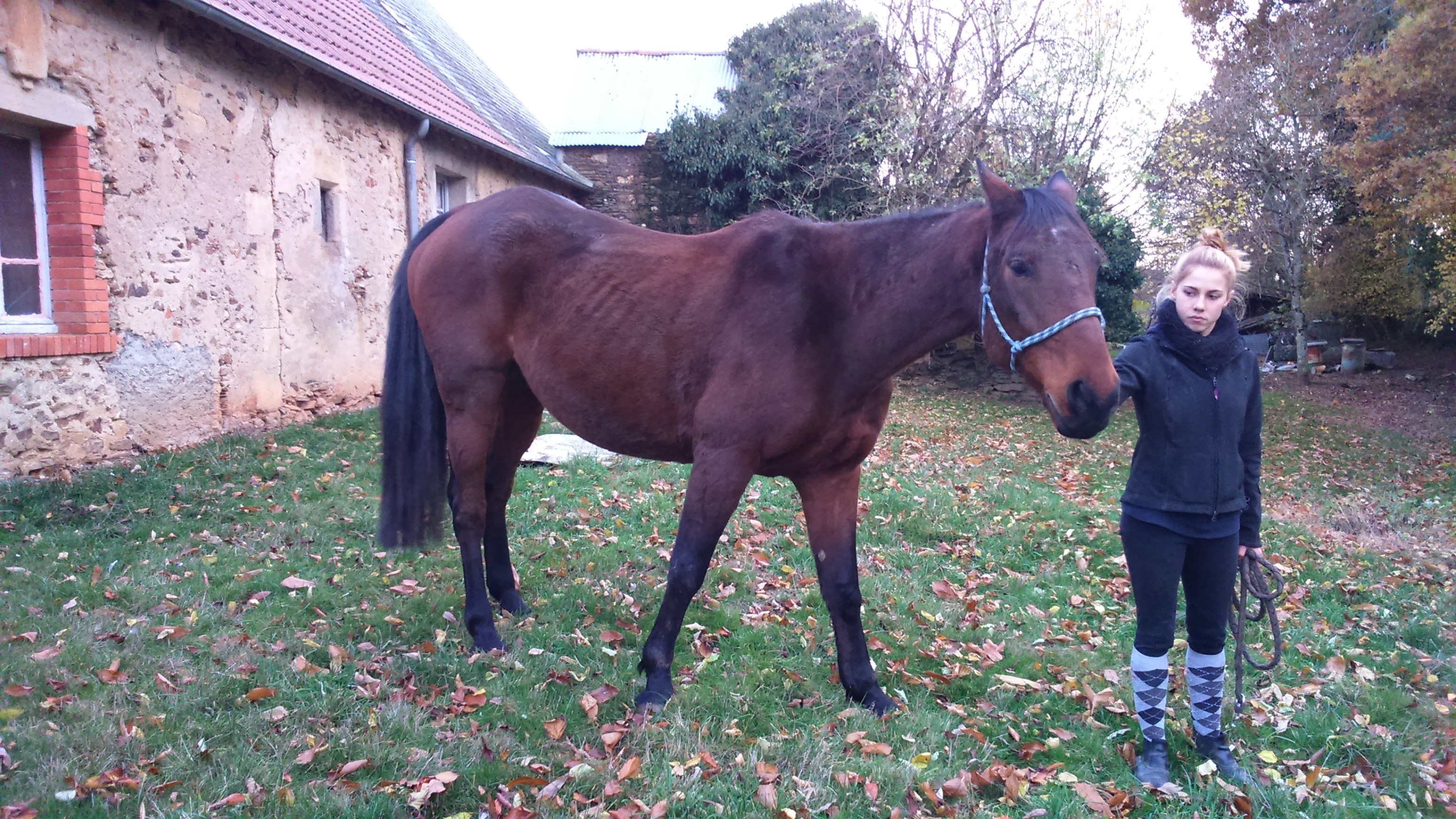 Azae est un amour de jument ! Une semaine pour nous apprivoiser ainsi que son compagnon de pré mais Azae est sereine et s’adapte très bien à sa nouvelle vie qui sera on l’espère sa vie jusqu’à la fin. Elle nous reconnaît bien et s’approche volontiers de nous au pré. Pour le moment elle ne profite que des câlins !