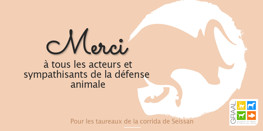 En ce dimanche 5 septembre, le GRAAL remercie tous les acteurs et sympathisants de la défense animale qui ont fait connaître leur opposition aux corridas et à la corrida de ce jour à Seissan.