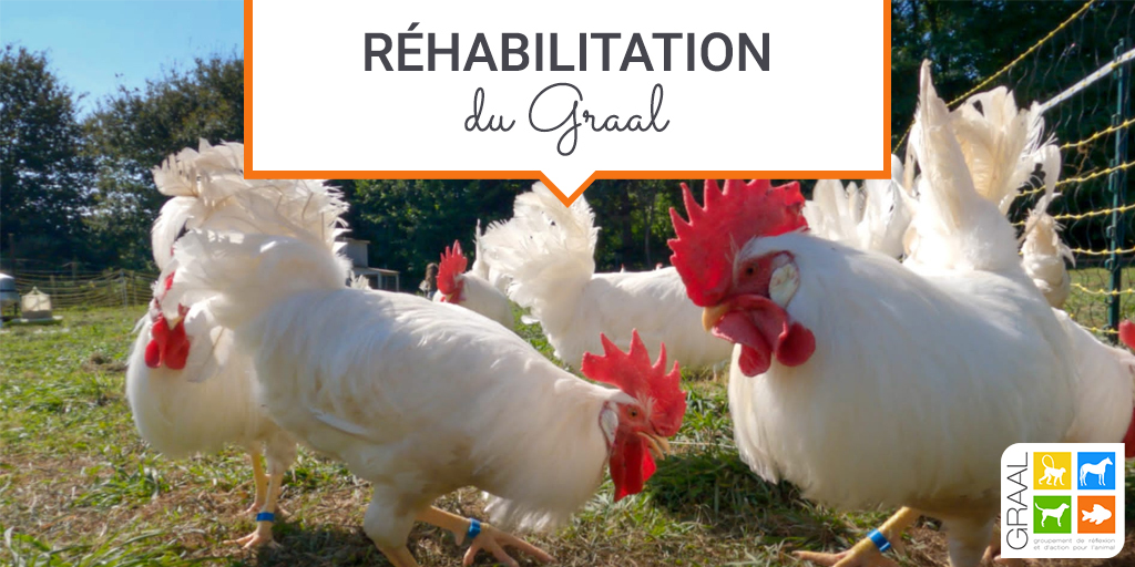 Issus de laboratoires, ces coqs ont eu la chance d’être réhabilités très jeunes, et vont pouvoir profiter d’une belle retraite dans les herbes bien vertes de la Bretagne !
