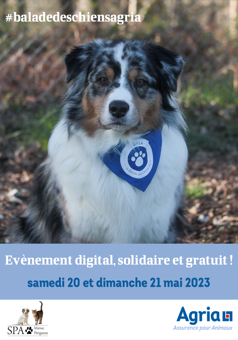 Samedi 20 et dimanche 21 mai, les chiens qui ont un foyer marchent pour ceux qui n’en ont pas ! Pour chaque chien participant, Agria Assurance pour Animaux fait un don de 5 € au refuge SPA de Périgueux.