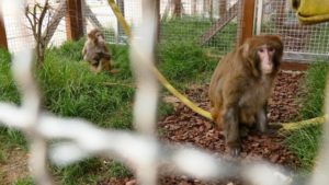 Photo prise en quarantaine à l’arrivée des primates(Arthur et Wallace de gauche à droite).