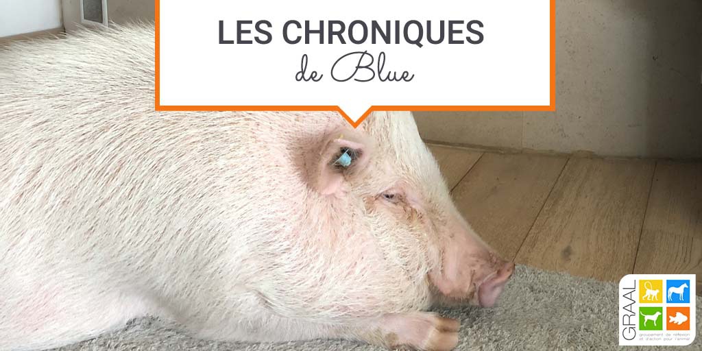 « Hello, moi c’est Blue. Attention, ne vous méprenez pas, je suis pas un cochon comme les autres. Je suis un cochon d’intérieur, enfin bon surtout l’hiver parce que l’été j’aime bien bronzer sur la terrasse. Mais plutôt du genre cocooning vous voyez, genre Netflix and chill devant la cheminée.