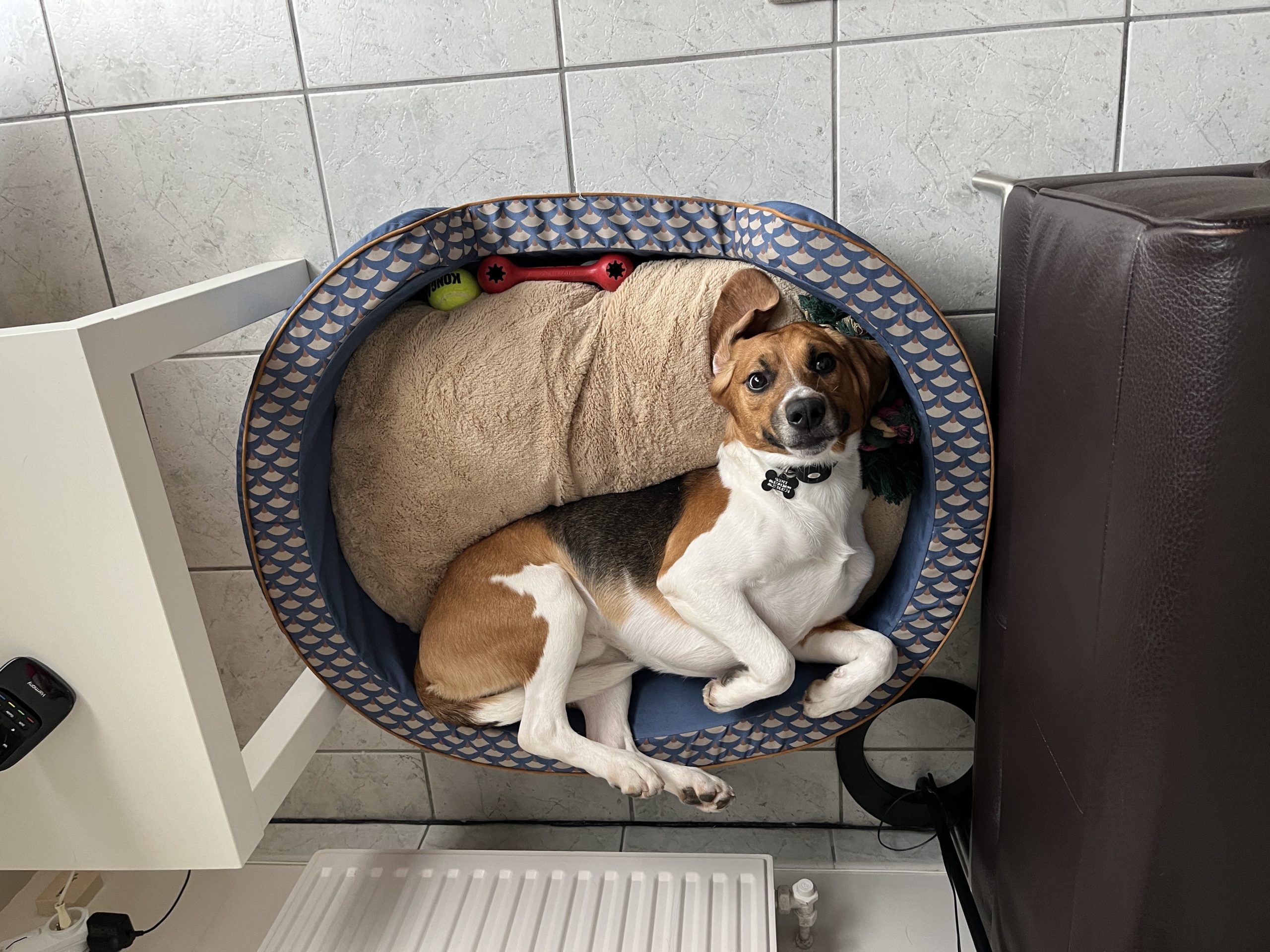 Est-ce ce que s’est dit Philippe quand il a aperçu Scott pour la première fois ? Très probablement ! Adopté à 1 an et demi au refuge de Dompierre-sur-Veyle il y a quelques semaines, Scott est craintif, mais en pleine santé et semble bien apprécier son nouveau foyer.
