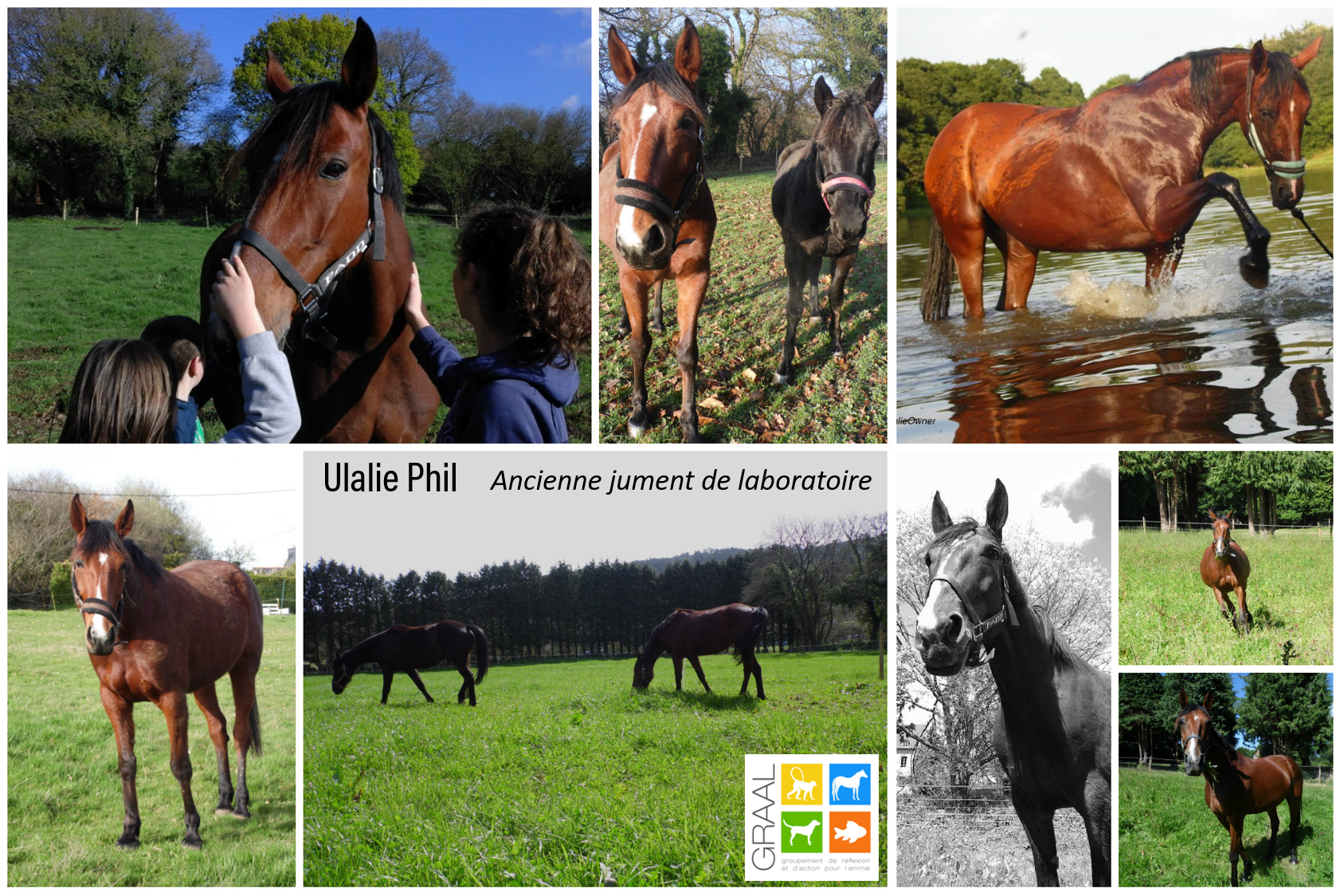 ULALIE PHIL, est une jolie jument âgée de 9 ans. Aujourd’hui en famille, elle a été auparavant utilisée pendant plusieurs années en laboratoire, pour produire des sérums antirabiques, antitétaniques, antivenimeux pour l’Homme.