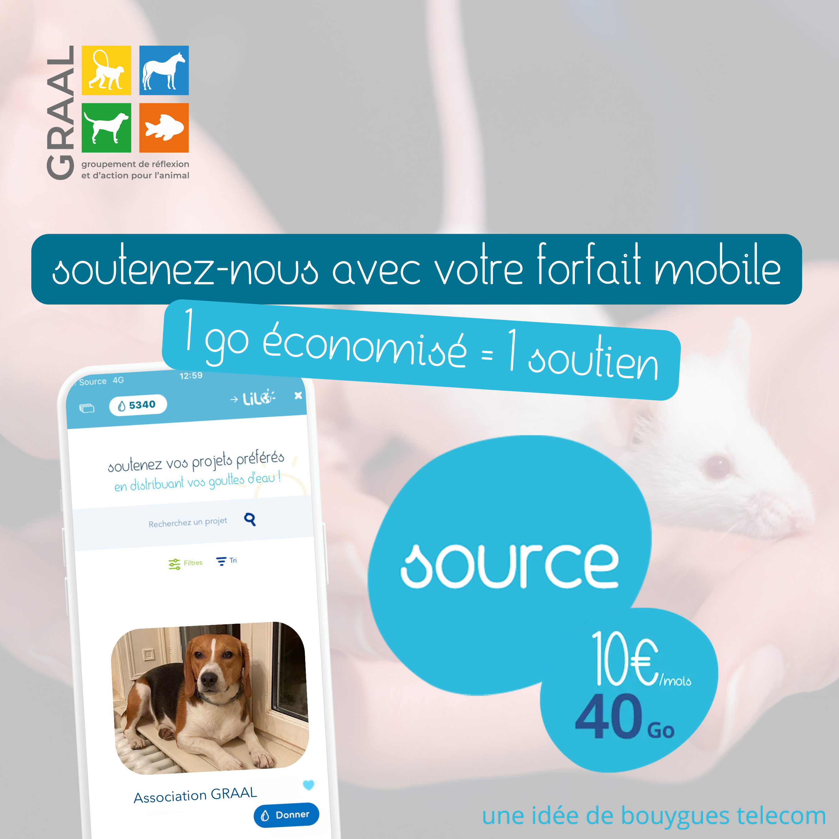 Transformez les Gigas que vous n’utilisez pas en soutien pour le GRAAL ! Comment ? Grâce au forfait Source Mobile (Bouygues Telecom) ! C’est le 1er forfait mobile responsable et solidaire qui valorise les Gigas non utilisés.