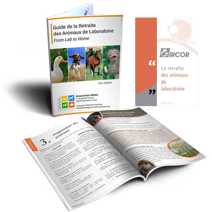 Parce que la retraite des animaux est avant tout une démarche coopérative, le GRAAL a publié la 1ère édition du « Guide de la retraite » à destination des professionnels. Outil de communication et de travail, ce guide est destiné à l’ensemble des acteurs de la Recherche utilisant des animaux à des fins scientifiques. En sus, le GIRCOR a conçu un « Aide-mémoire » complémentaire. Ces publications conjointes témoignent à la fois du savoir-faire unique développé par le GRAAL auprès des unités de recherche depuis 2005 et de l’intérêt croissant de la Recherche pour la retraite des animaux arrivés en fin de procédure.