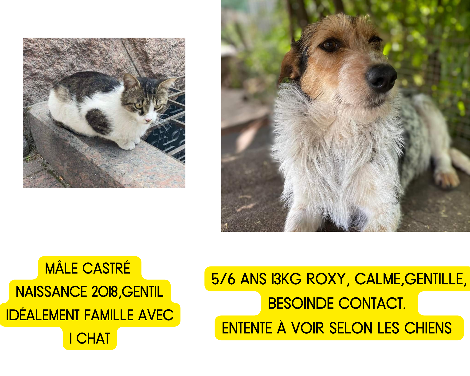 Ces chiens et chats sont rapatriés quoi qu’il arrive fin juillet, mais doivent impérativement être placés à leur arrivée. Une solution a été trouvée pour quelques chats mais c’est malheureusement loin d’être suffisant.