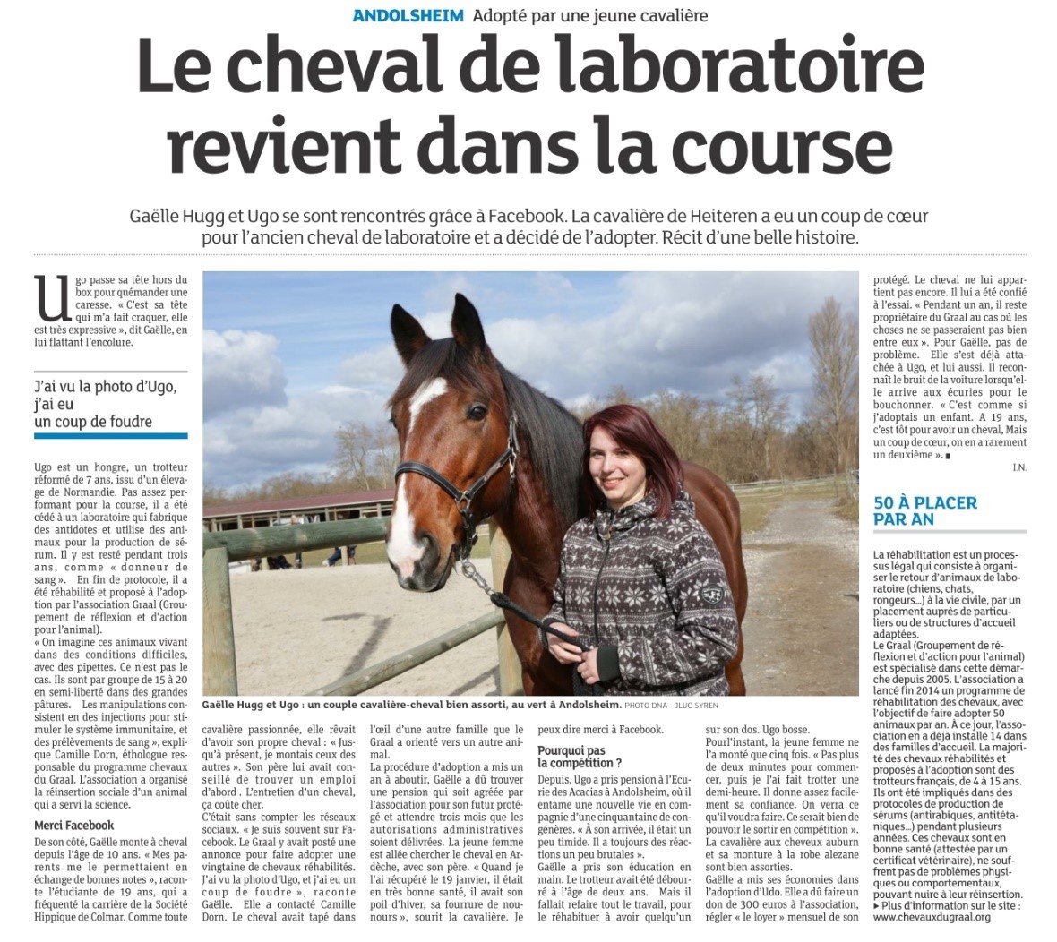 Gaëlle, adoptante d'Ugo Gaëlle et Ugo ont également été mis à l’honneur dans un article du journal des DNA, paru le 05 mars 2016 que vous pouvez consulter et télécharger ici :